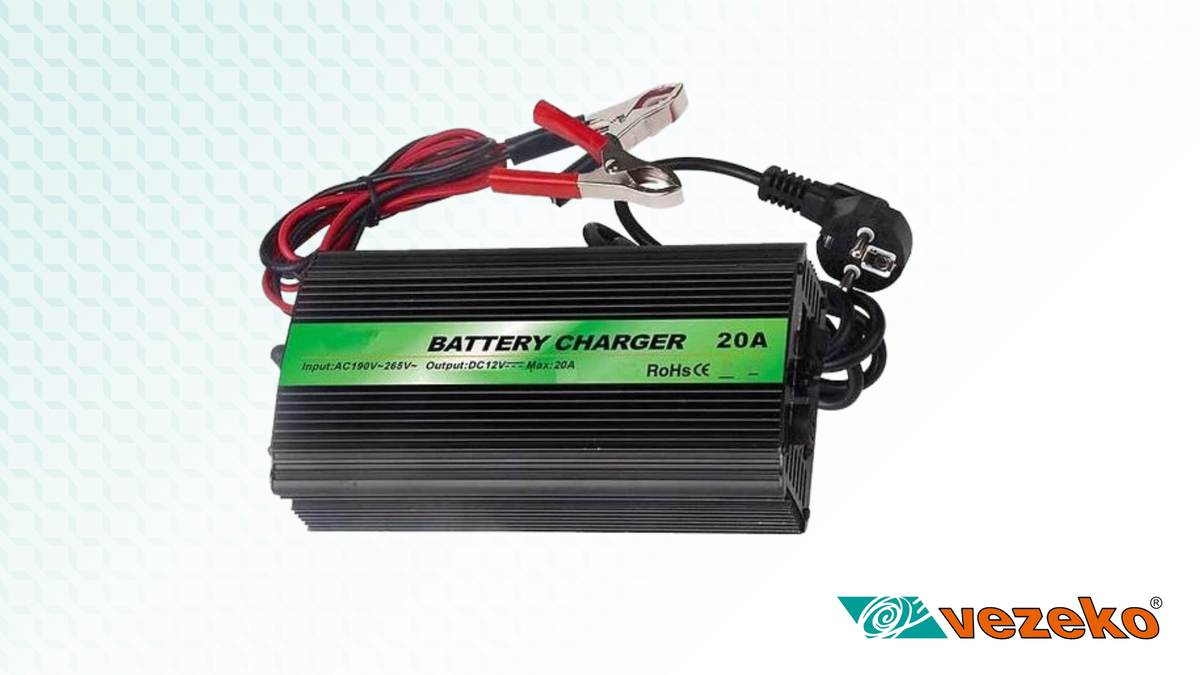 Nabíječka je vybavena koncovkou pro přímé připojení k přívěsům VEZEKO. Nabíječka Pb akumulátorů CARSPA ENC1220 12V/20A s automatikou Napětí 14,4V naprázdno, 13,8V při zátěži 20A, trvalý nabíjecí proud 20A. Třístupňové nabíjení s automatickým odpojením po dosažení znaků nabití. Poté je aktivní pouze konzervační nabíjení malým proudem. Nabíječku je možno ponechat trvale připojenou k baterii. LED pro indikaci stavu:červená-nabíjení, zelená-baterie nabita.