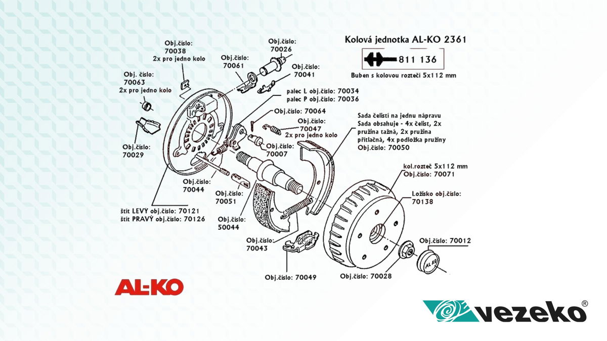 Sada brzdových čelistí 2360, 2361 malá AL-KO (3500 kg)