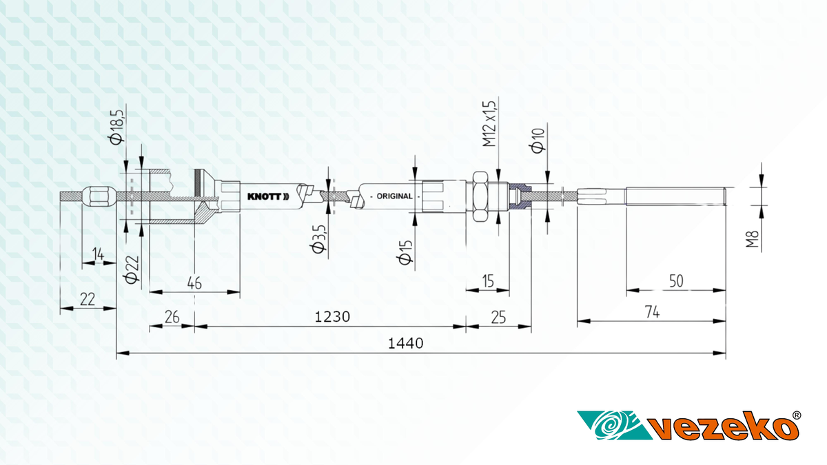 Brzdový lanovod KNOTT 1230/1440 NEREZ