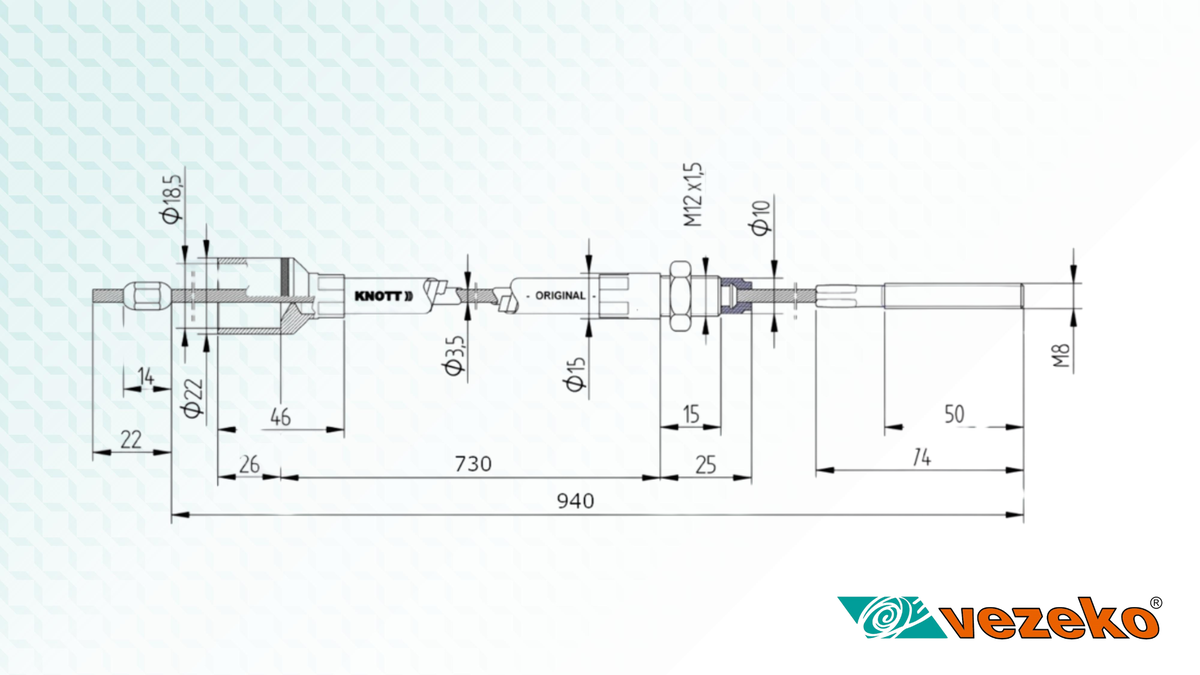 Brzdový lanovod KNOTT 730/940 nerez