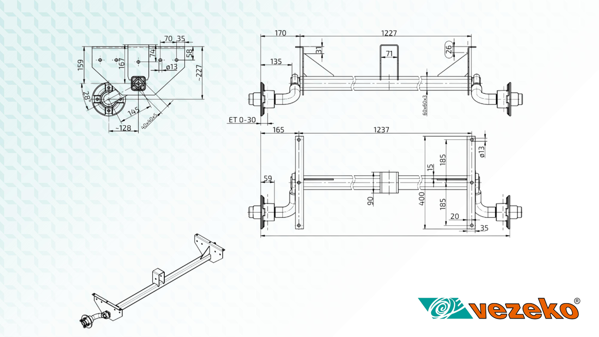 Náprava nebrzděná - přívěs Vario A1, A2 750 kg