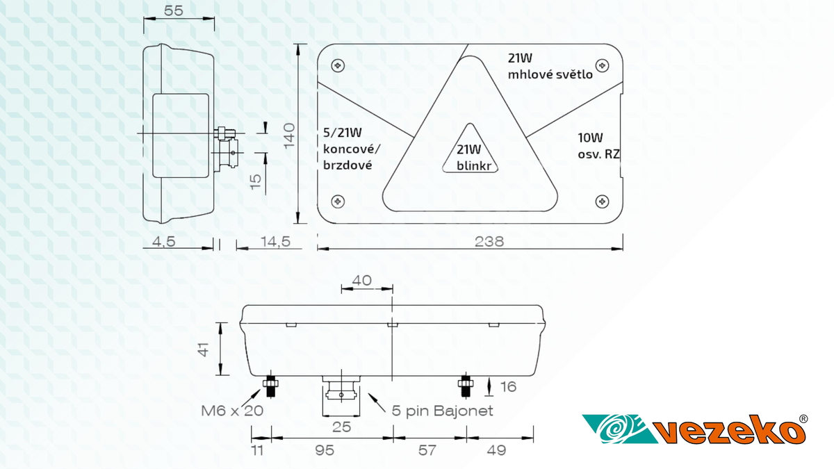 Zadní skupinové světlo Aspöck s SPZ žárovkové – pravé