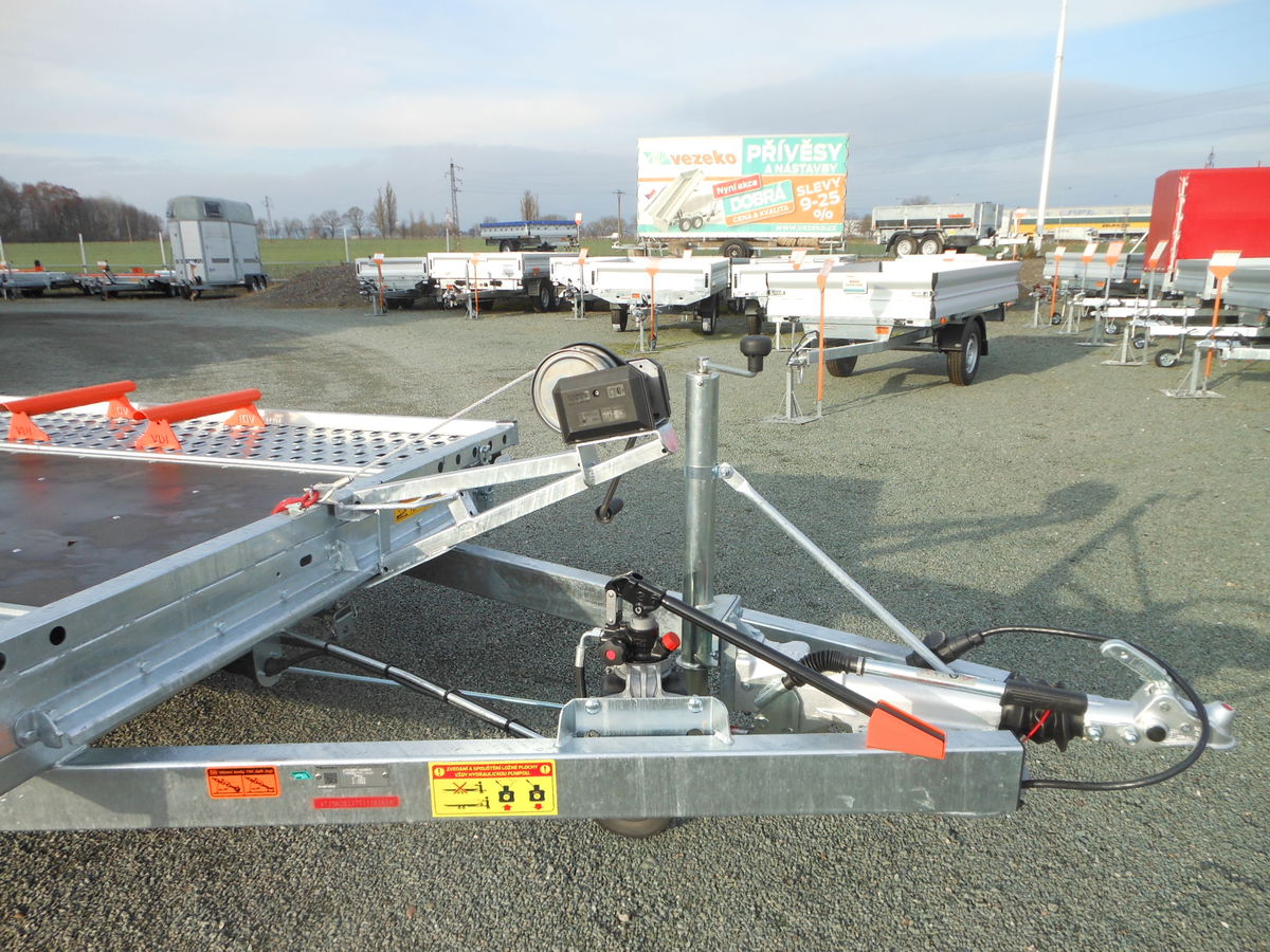 Hydraulicky sklopný pomocí manuální pumpy.