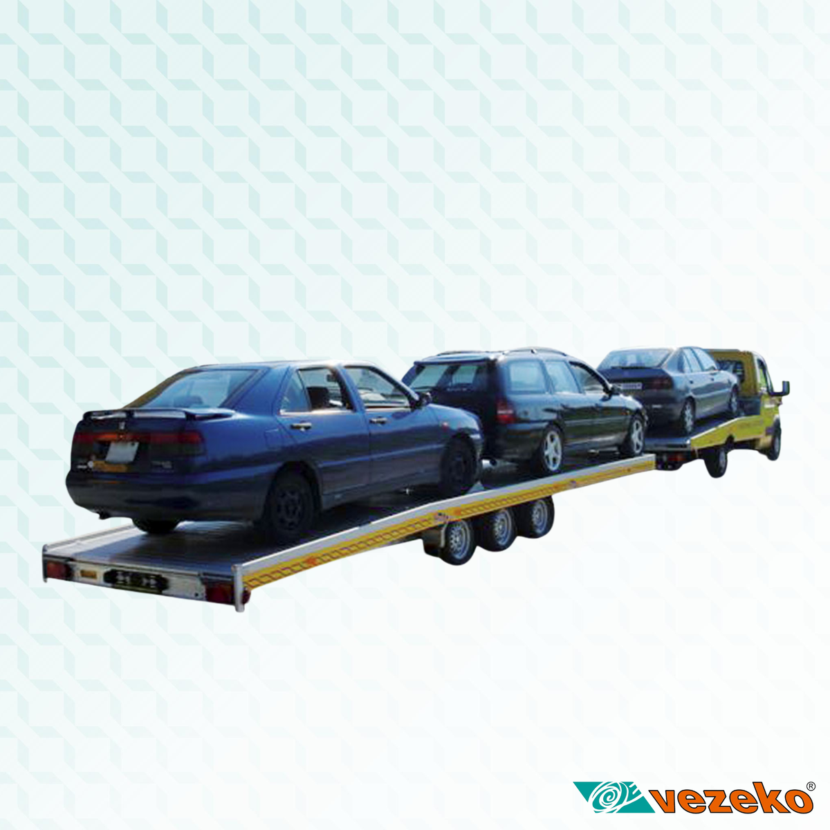 Dvounápravový nebo třínápravový přepravník dvou automobilů. Podlaha je vyrobená z hliníkových skládaných profilů. Přívěs je vybaven dvěma rozpěrnými tyčemi se zakládacími klíny, hliníkovými nájezdy uloženými pod ložnou plochou, ručním navijákem, opěrným kolečkem a rezervním kolem.