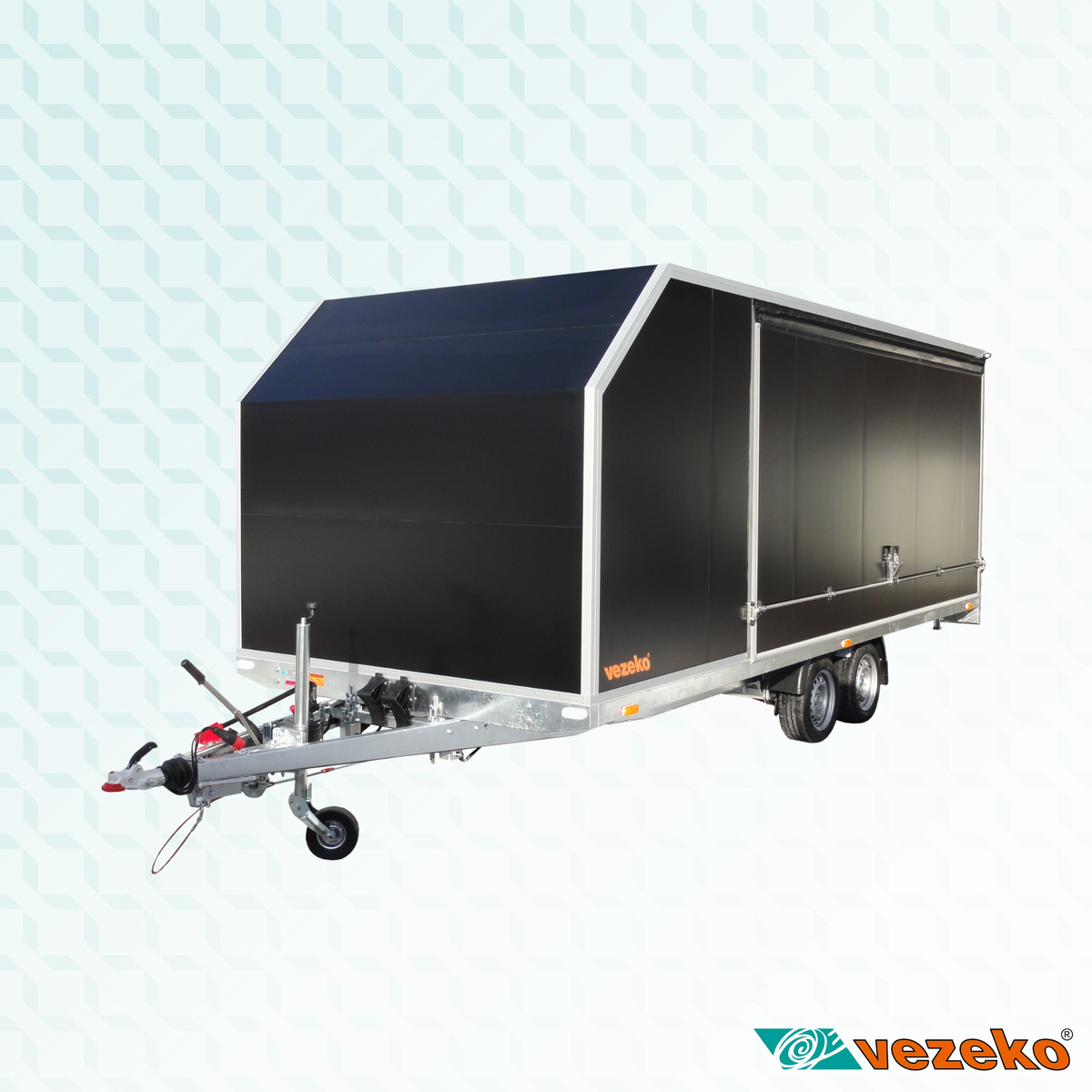 „V“ oje montované k podvozku. Výška na střed koule 430 mm.