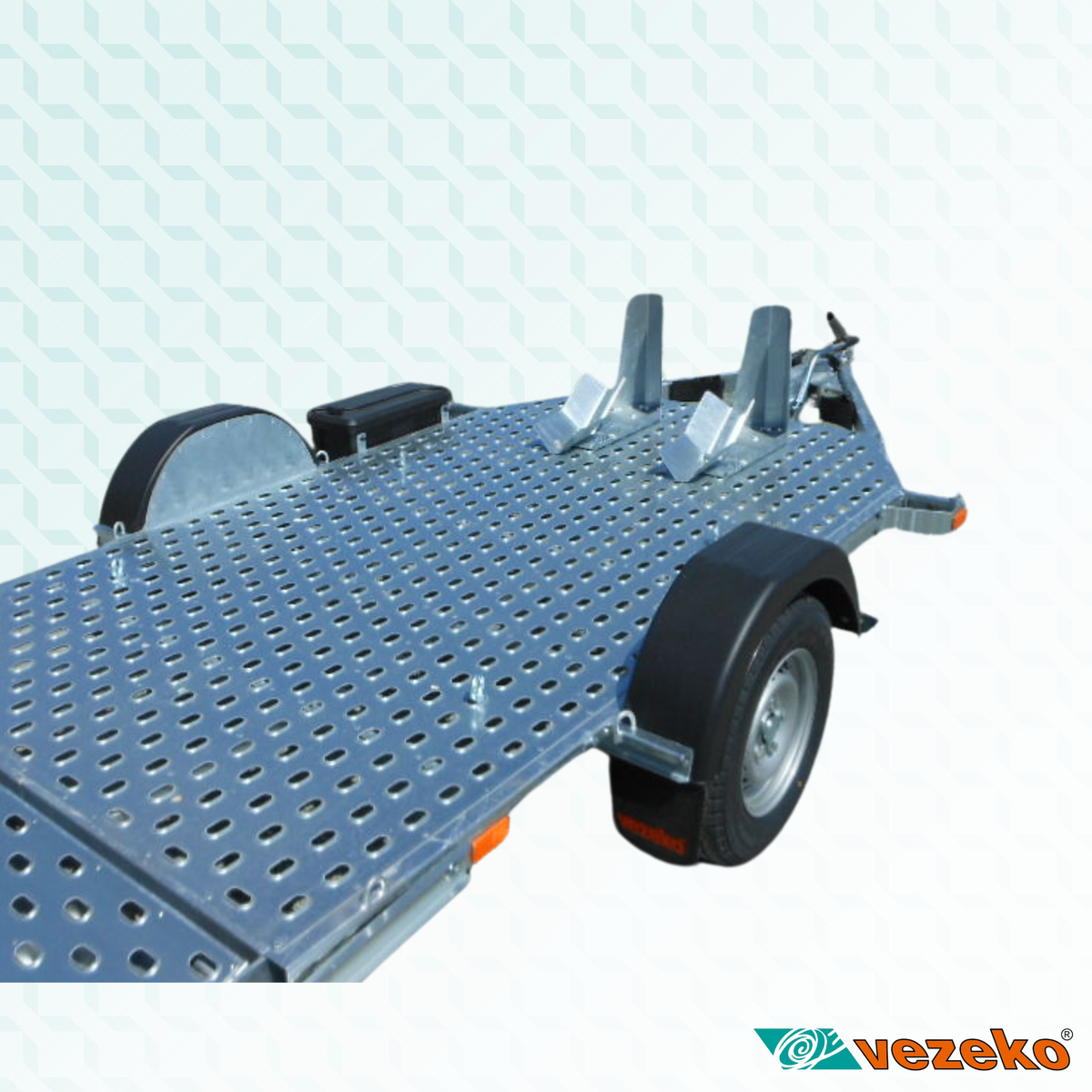 Přívěs je určený pro přepravu dvou motocyklů nebo jedné čtyřkolky.
