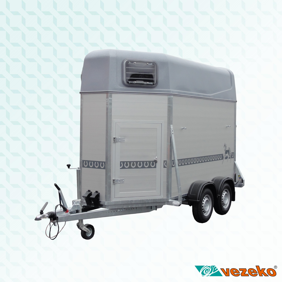 Dvounápravový brzděný přepravník na dva koně. Přívěs je vyrobený z hliníkových skládaných profilů, střecha je laminátová se dvěma plastovými větracími okny. V zadní části přepravníku na koně je výklopná rampa s gumou a příčkami a samorolovací plachta. Podlaha tohoto přívěsu na přepravu koní je z hliníkových skládaných profilů a je pokryta gumou, rám je svařovaný, žárově zinkovaný. Přívěs je dále vybaven servisními dveřmi, bočním polstrováním a středovou přepážkou.
