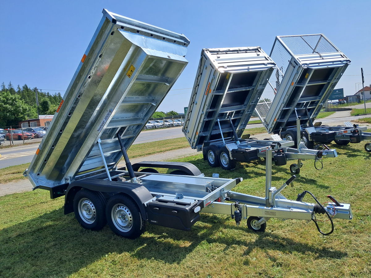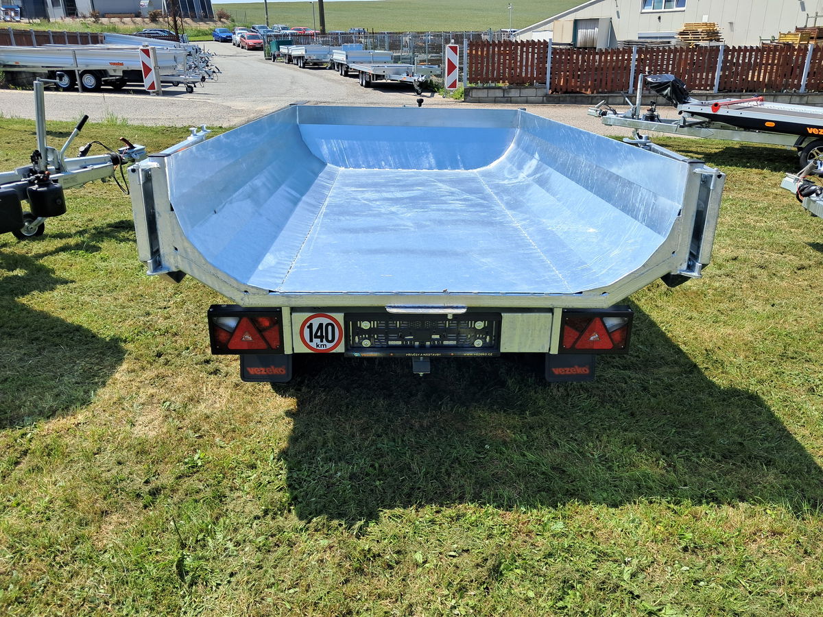 Jednonápravové nebo dvounápravové vždy brzděné přívěsy s koly pod ložnou plochou, která je přístupná ze všech stran. Přívěs je sklopný dozadu pomocí manuální hydraulické pumpy s připojením na AKU vrtačku, na objednávku lze přívěs vybavit i hydraulickým elektroagregátem. Odnímatelné bočnice jsou zhotoveny z eloxovaných hliníkových profilů s nízkou hmotností. Podlaha je z vodovzdorné protiskluzové překližky.