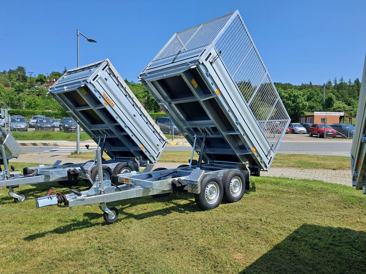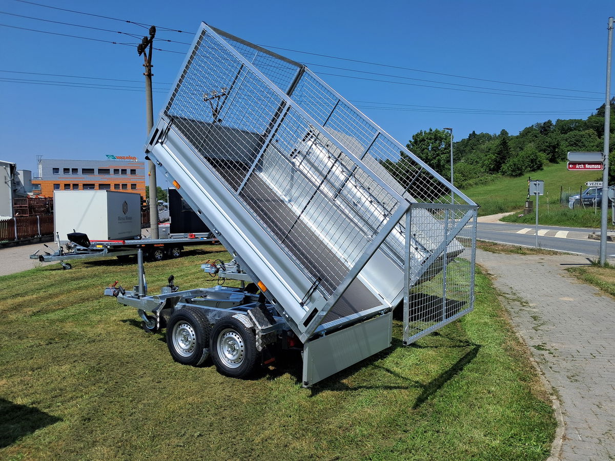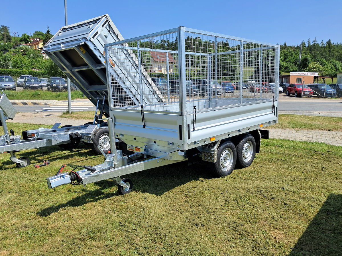 Přívěs je vybaven pletovovou elektrohydraulickým sklápěním, nástavbou a zakrývací plachtou.