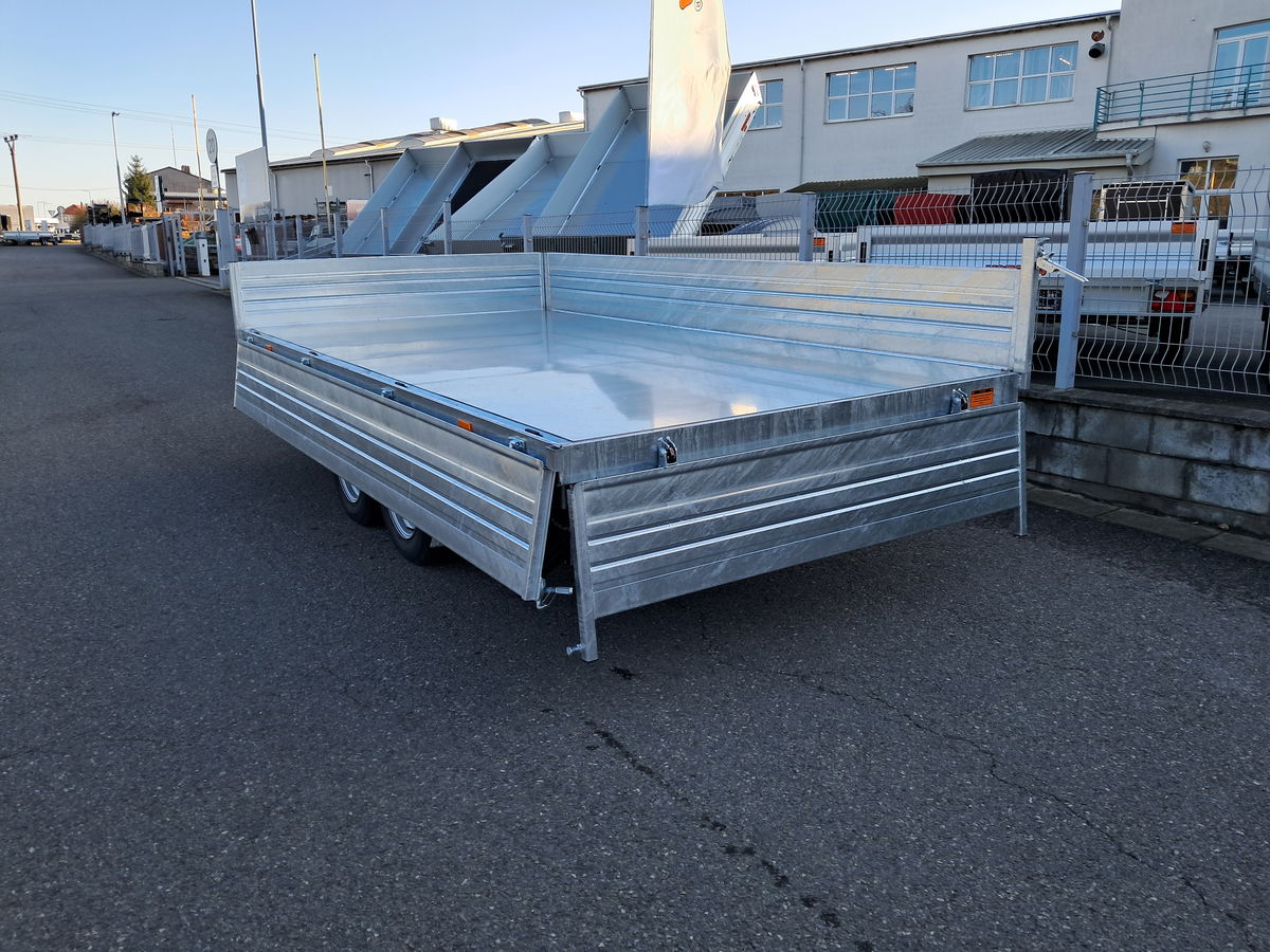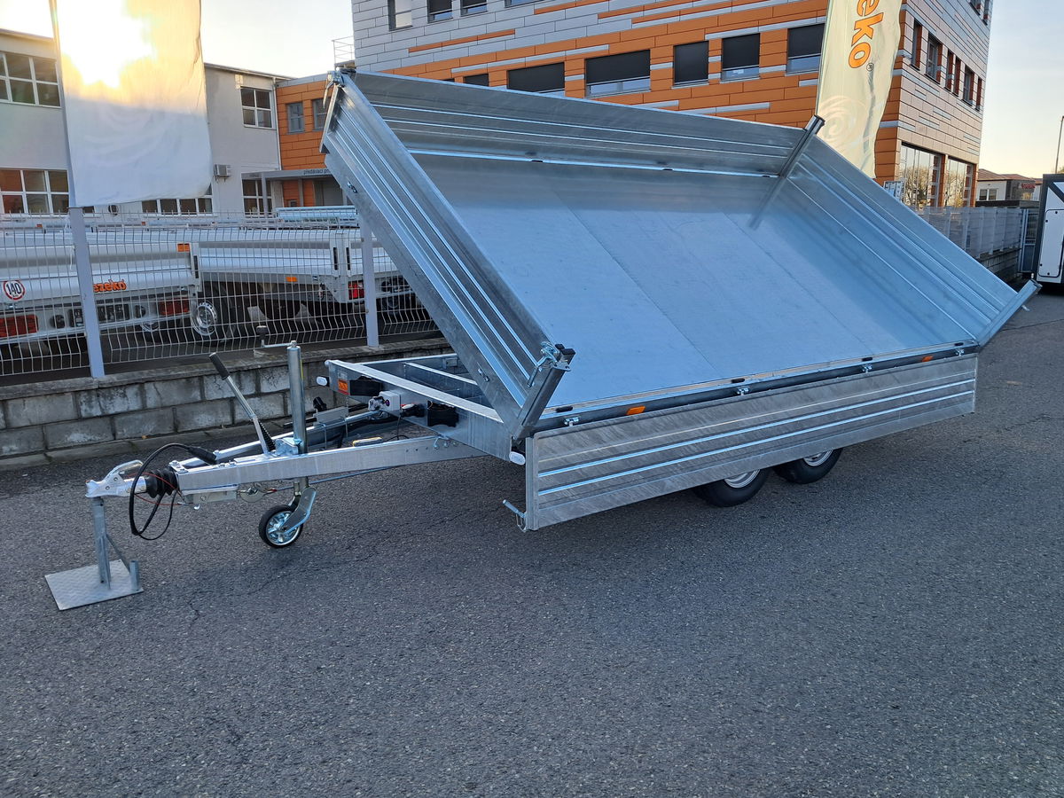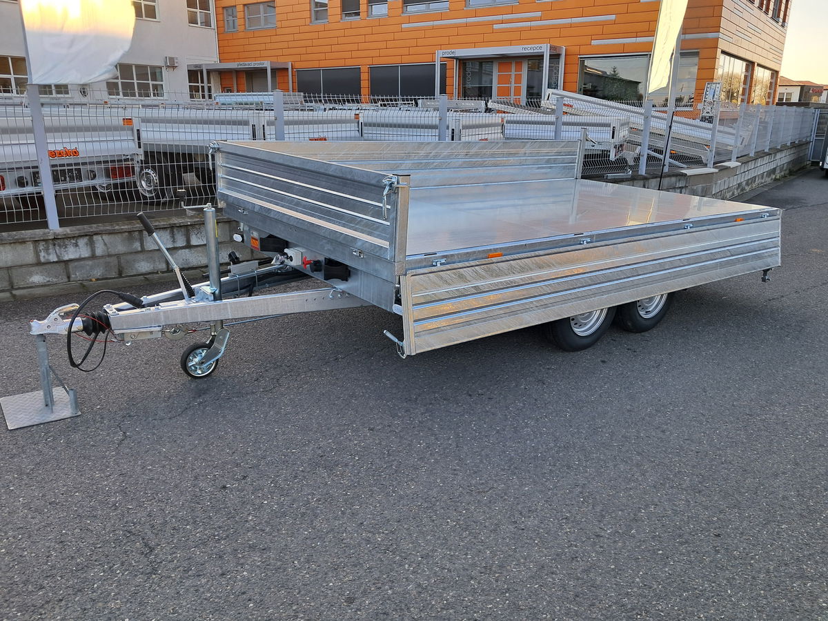 Robustní jednonápravové nebo dvounápravové vždy brzděné přívěsy s koly pod ložnou plochou. Přívěsy jsou sklopné do tří-stran pomocí manuální hydraulické pumpy, na objednávku lze přívěs vybavit i hydraulickým elektroagregátem.
