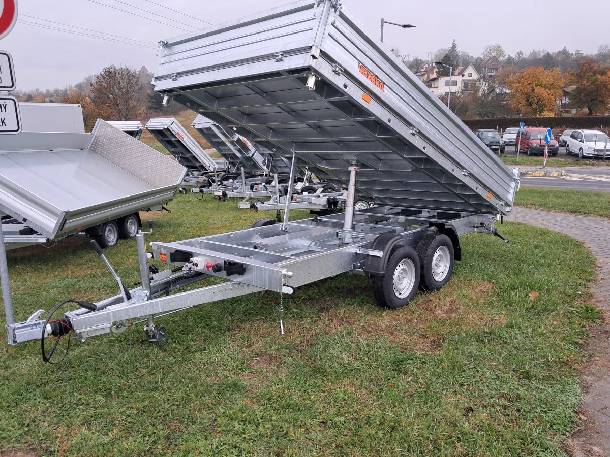 Robustní jednonápravové nebo dvounápravové vždy brzděné přívěsy s koly pod ložnou plochou. Přívěsy jsou sklopné do tří-stran pomocí manuální hydraulické pumpy, na objednávku lze přívěs vybavit i hydraulickým elektroagregátem.