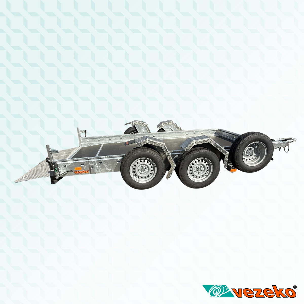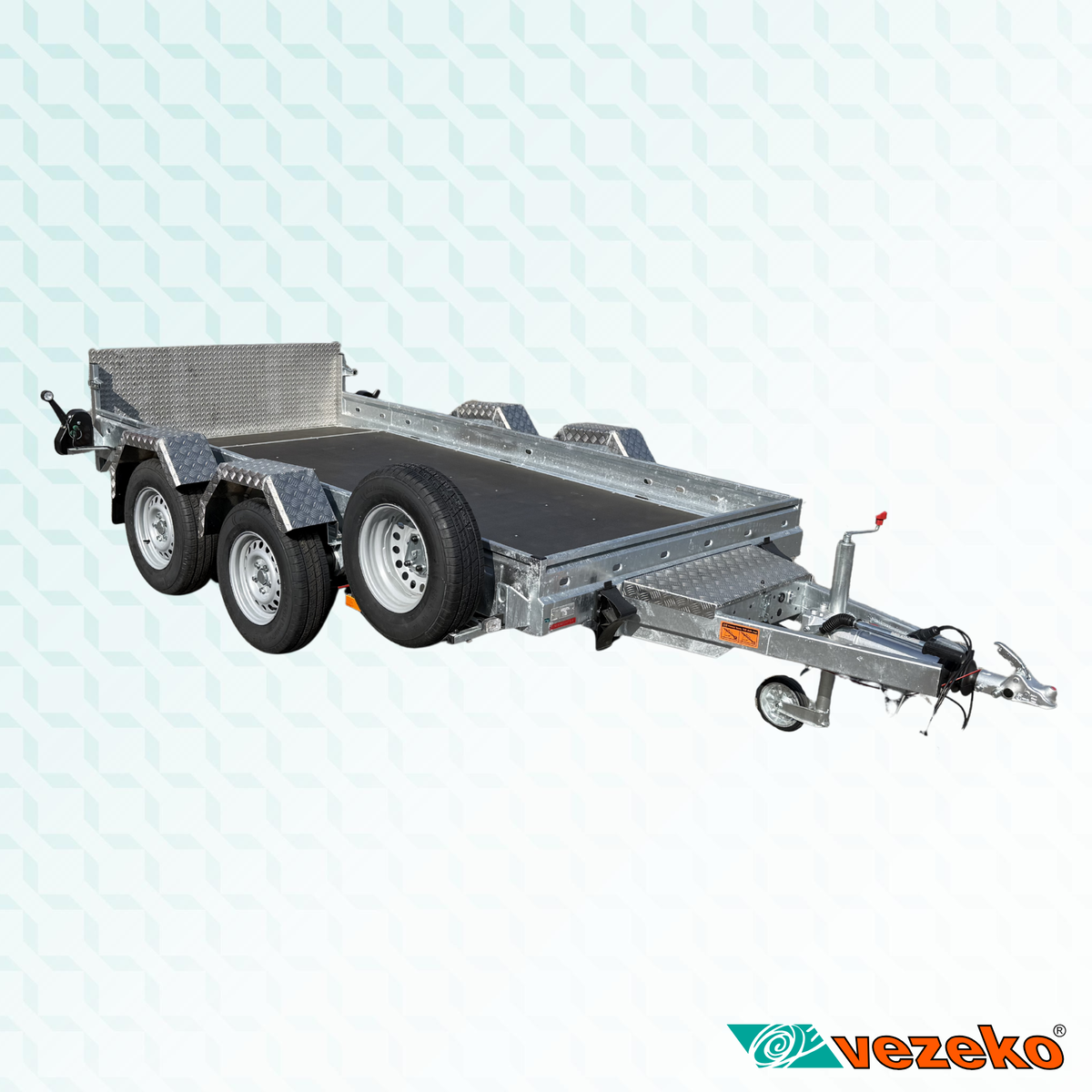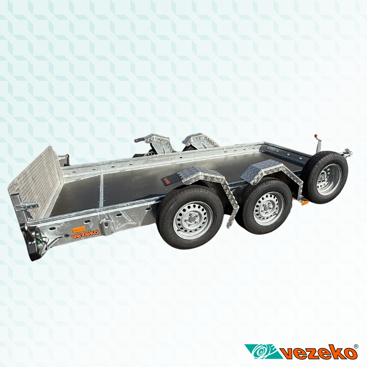 Přívěs je vybaven zesílenou nerezovou rampou, elektrohydraulickou jednotkou pro spouštění ložné plochy a rezervním kolem.