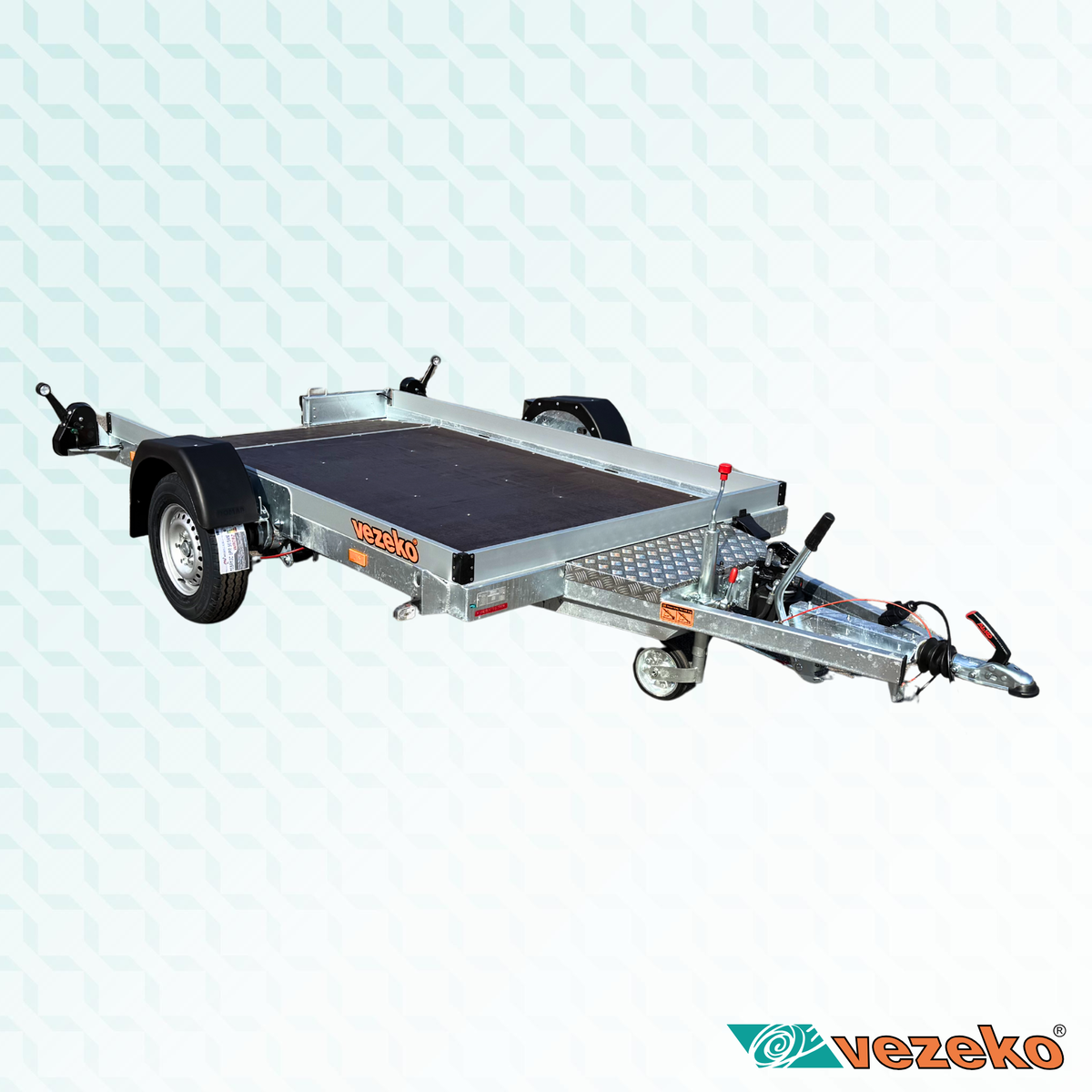 Přívěs je v provedení plato s bočnicemi 100 mm z hliníkového profilu.