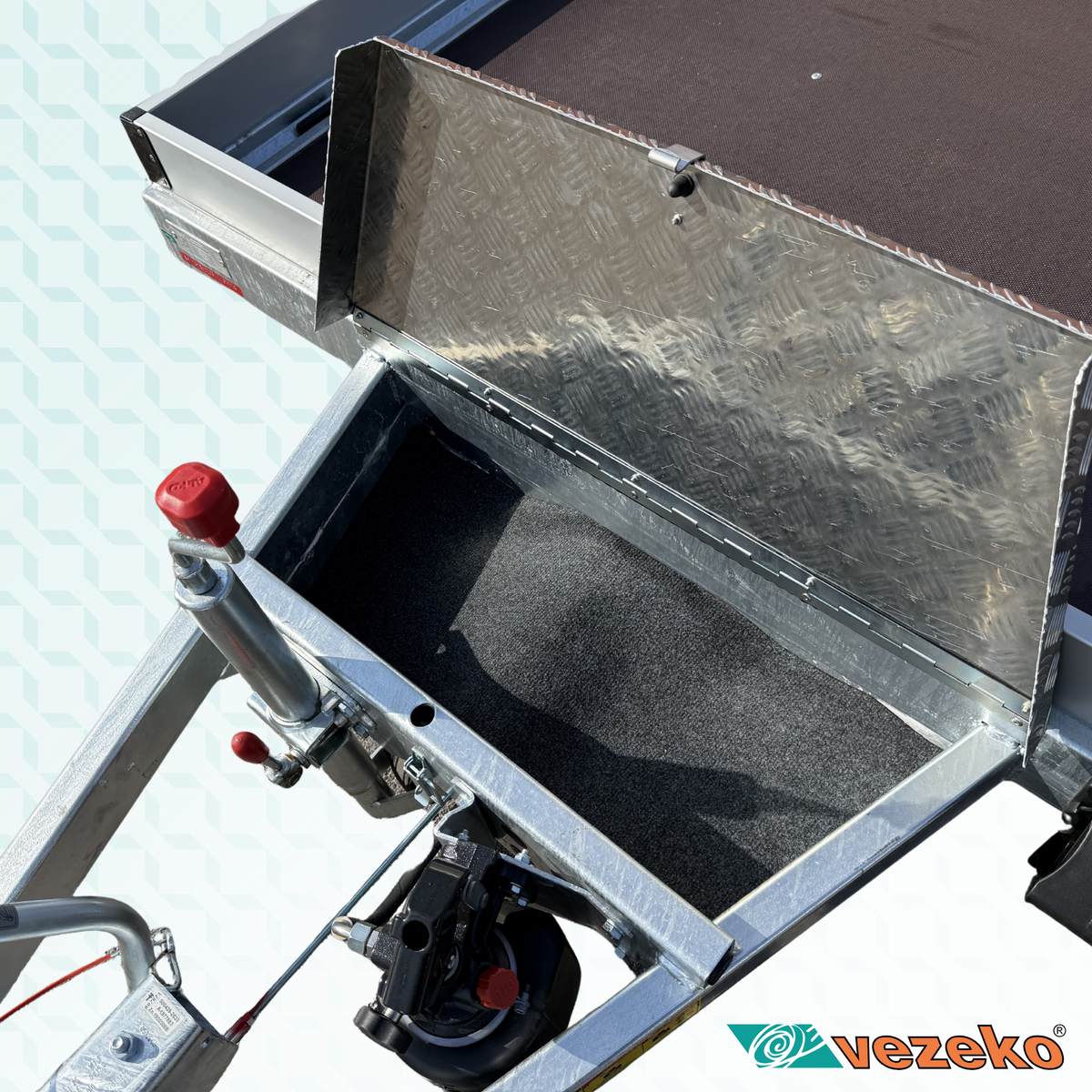 „V“ oje svařené s podvozkem. Výška na střed koule 430 mm.