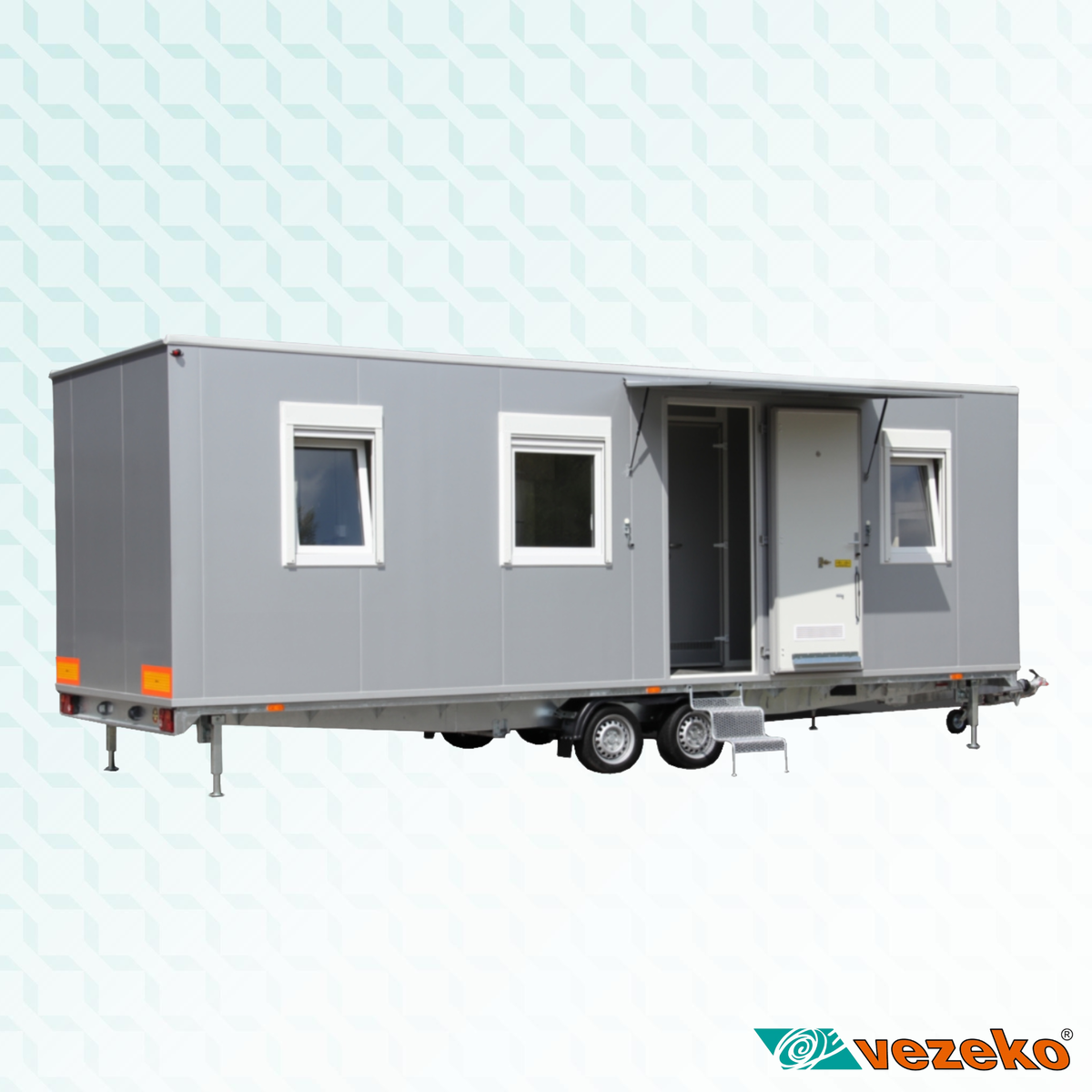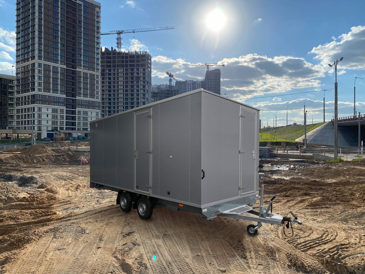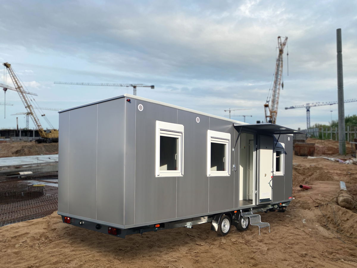 Mobilní stavební buňky MOBI jsou jednonápravové nebo dvounápravové brzděné skříňové přívěsy. Skříň je postavená z izotermických sendvičových panelů tl. 50 mm v provedení ze skládaných stříbrných panelů nebo z bílých celoplošných panelů.