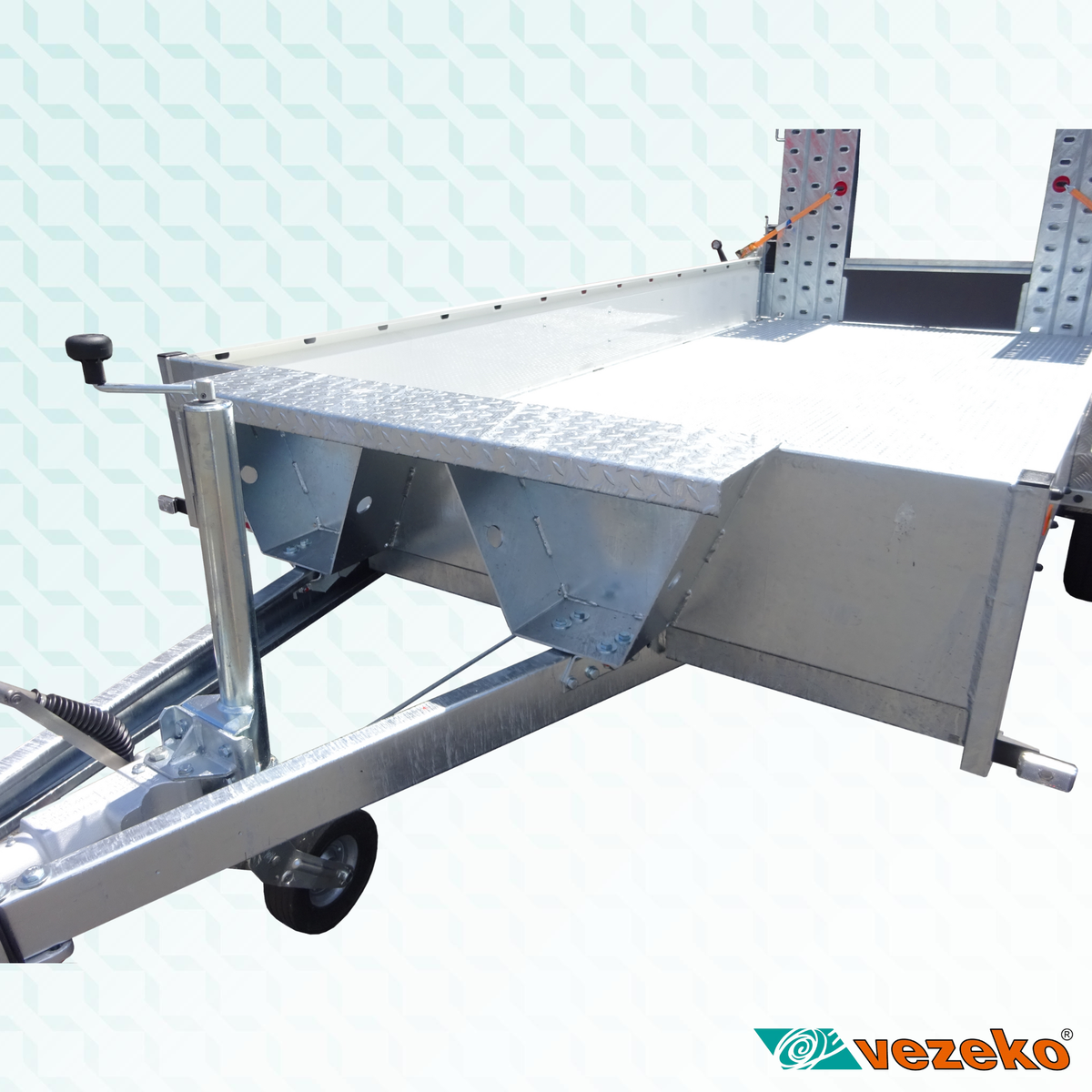 „V“ oje montované k podvozku. Výška na střed koule 430 mm.