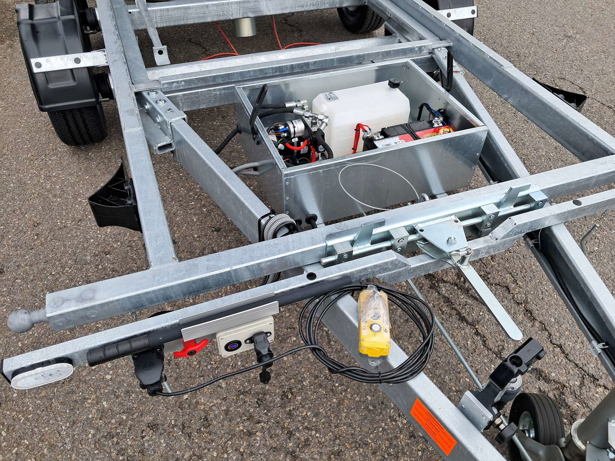 Třetí funkcí přívěsu je naklápění ložné plochy dozadu. Přepojením zdvojeného rámu se z přívěsu stane přepravník nejrůznější techniky. Zadní kombinovaně výklopné čelo poslouží v této variantě jako nájezdová rampa, která s naklopenou ložnou plochou umožní najetí technice i s nízkou světlostí. Pro připevnění nákladu je možné využít osmi kotvících ok, která jsou zapuštěná do překližkové podlahy.