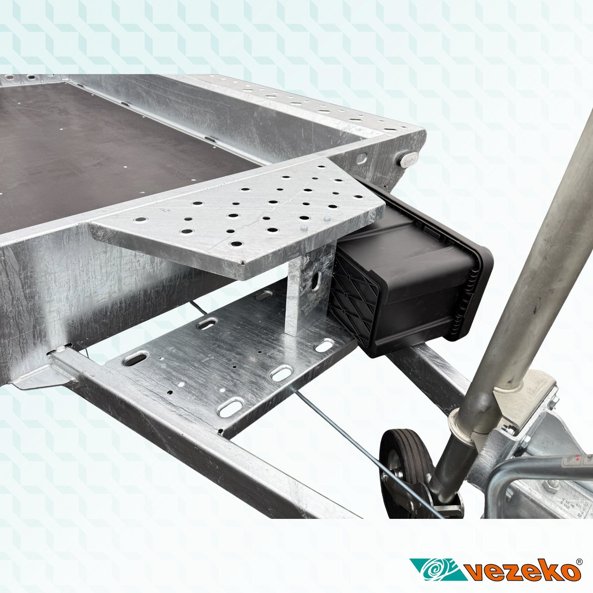 „V“ oje svařené s podvozkem. Výška na střed koule 430 mm.