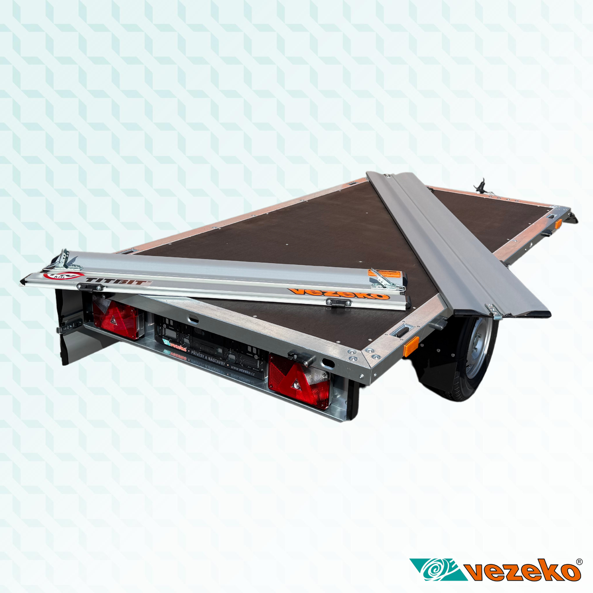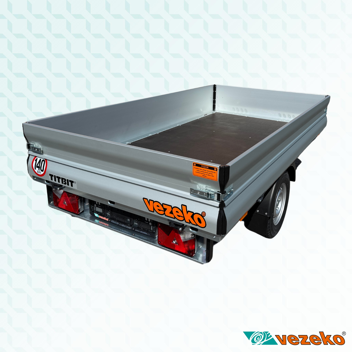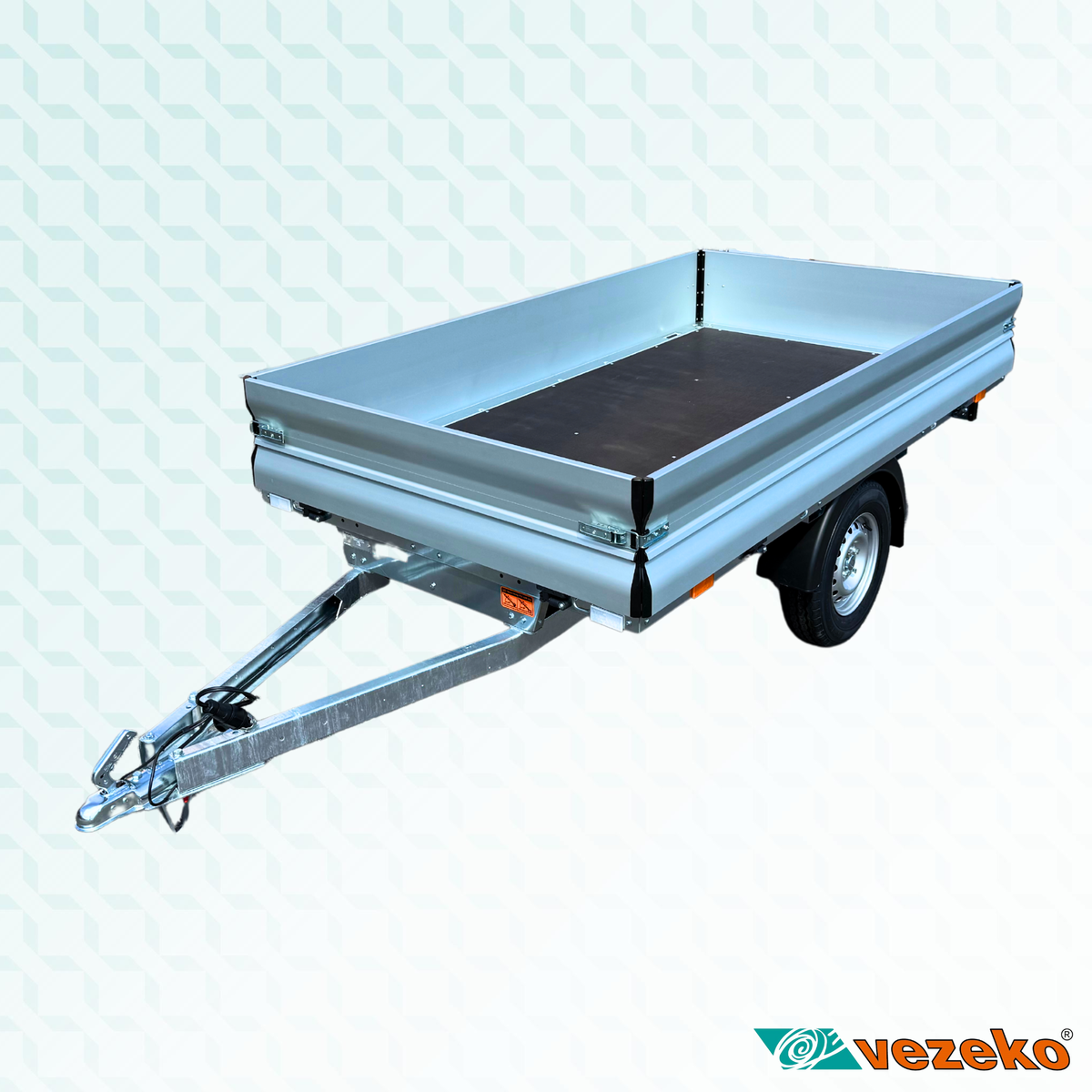 Přívěs je v provedení valník s AL bočnicemi výšky 350 mm a s přípravou pro montáž dalšího příslušenství.