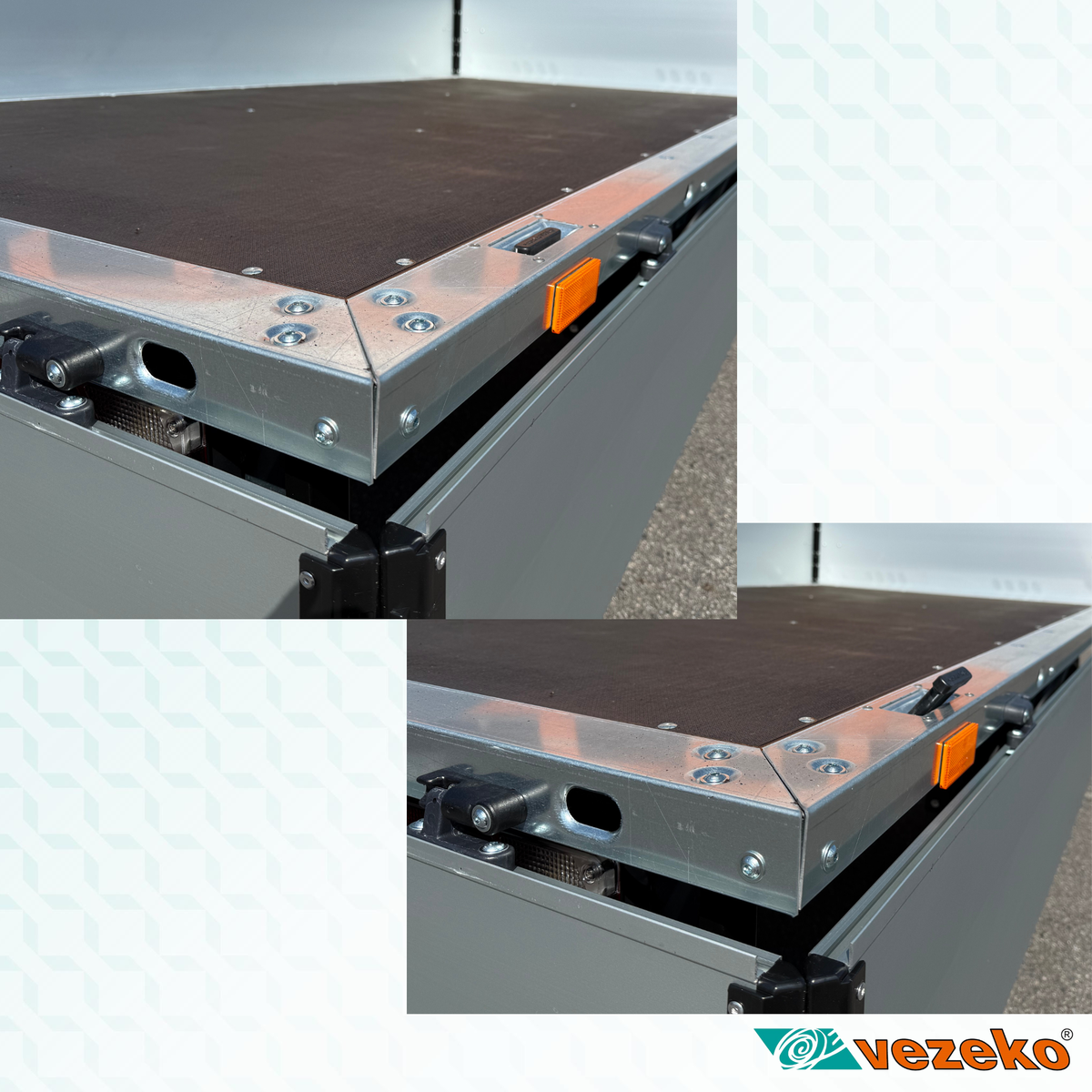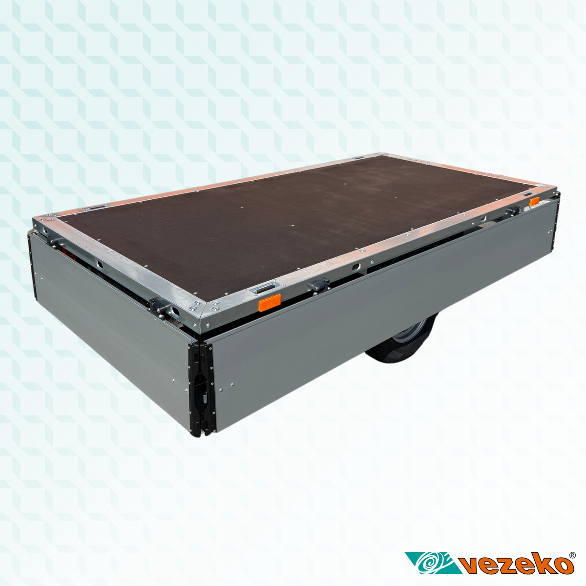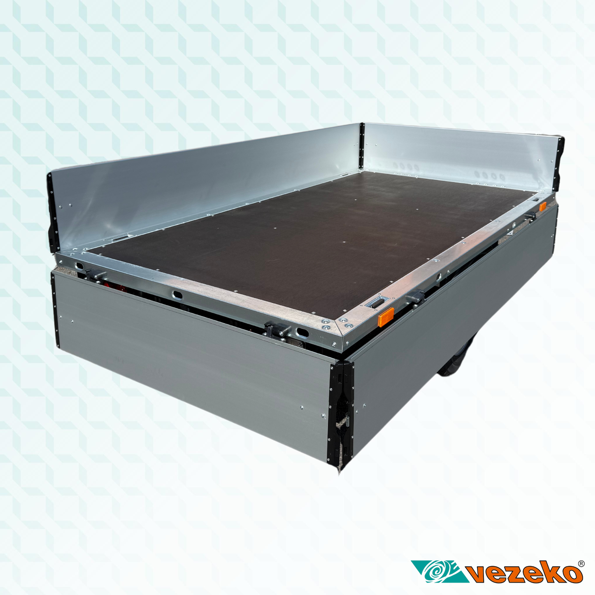 Přívěs je v provedení valník s AL bočnicemi výšky 350 mm a s přípravou pro montáž dalšího příslušenství.