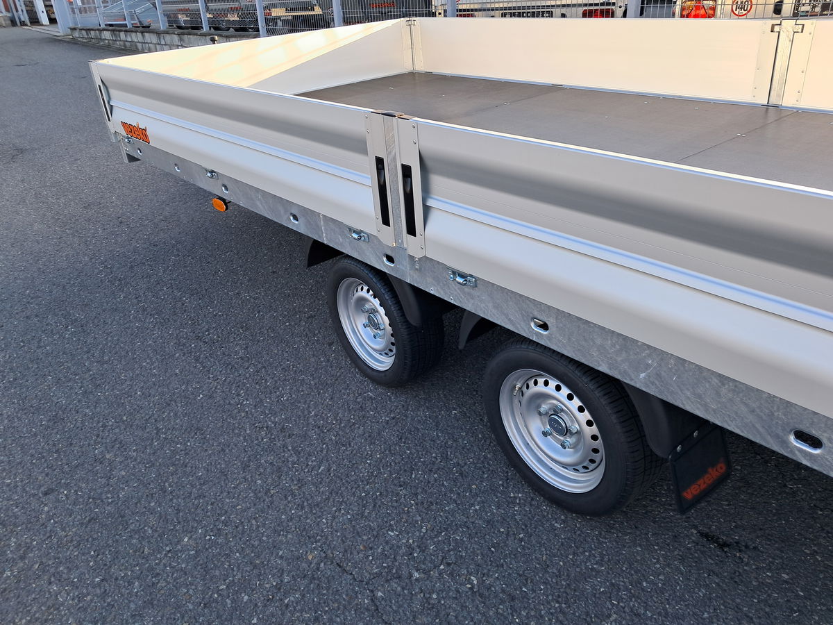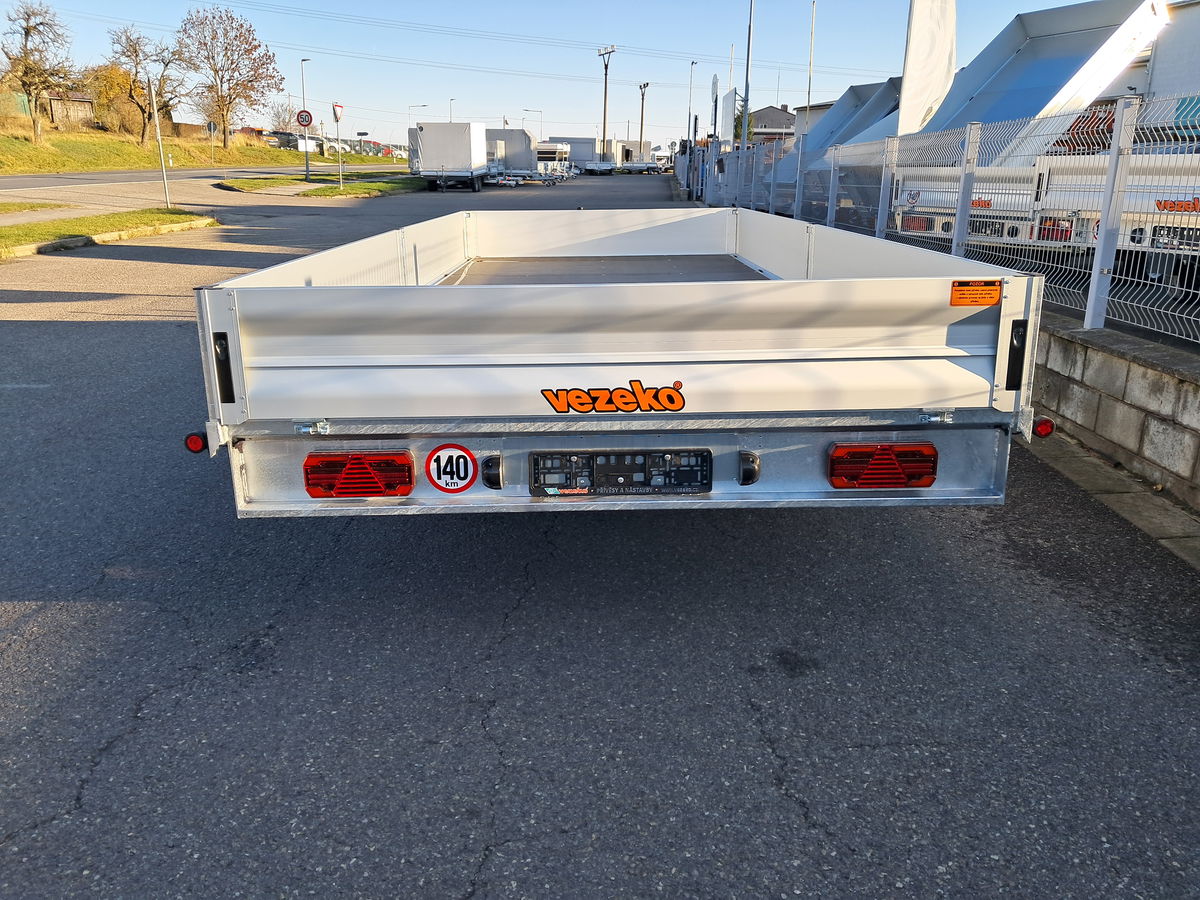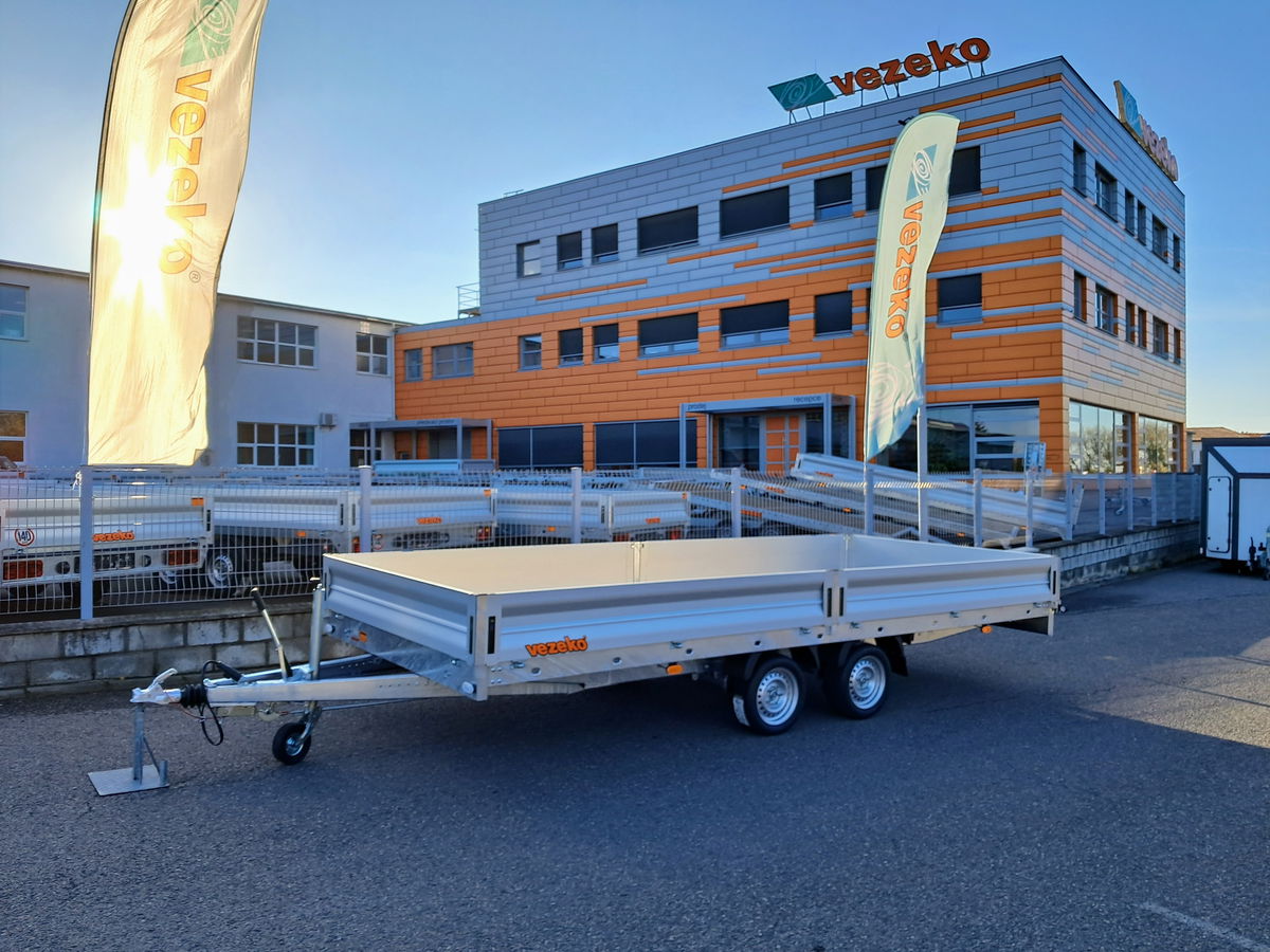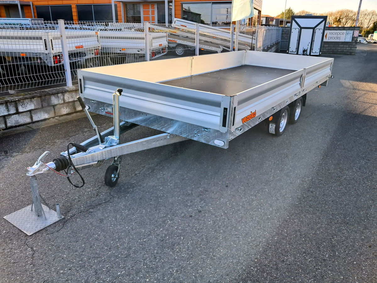 Přívěs je v provedení valník s AL bočnicemi výšky 350 mm a s přípravou pro montáž dalšího příslušenství.