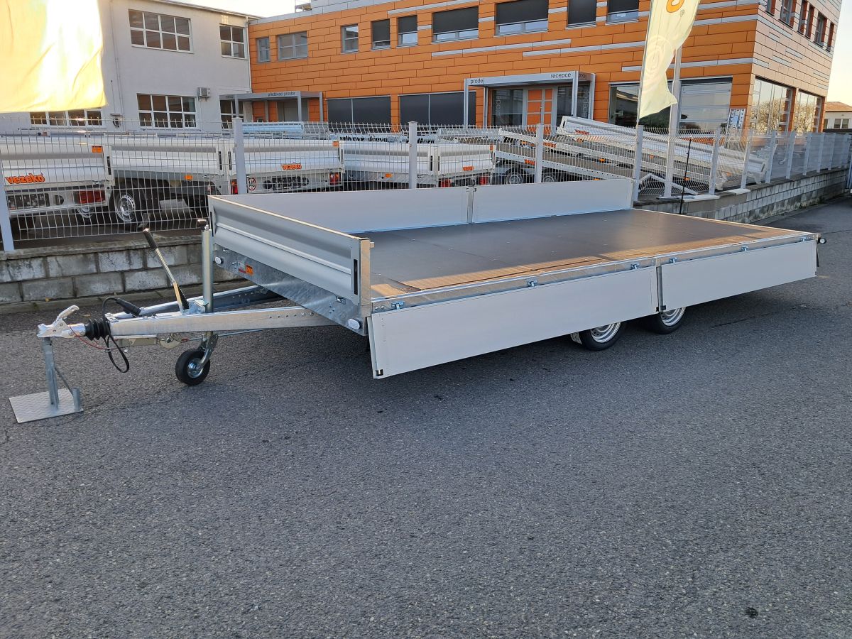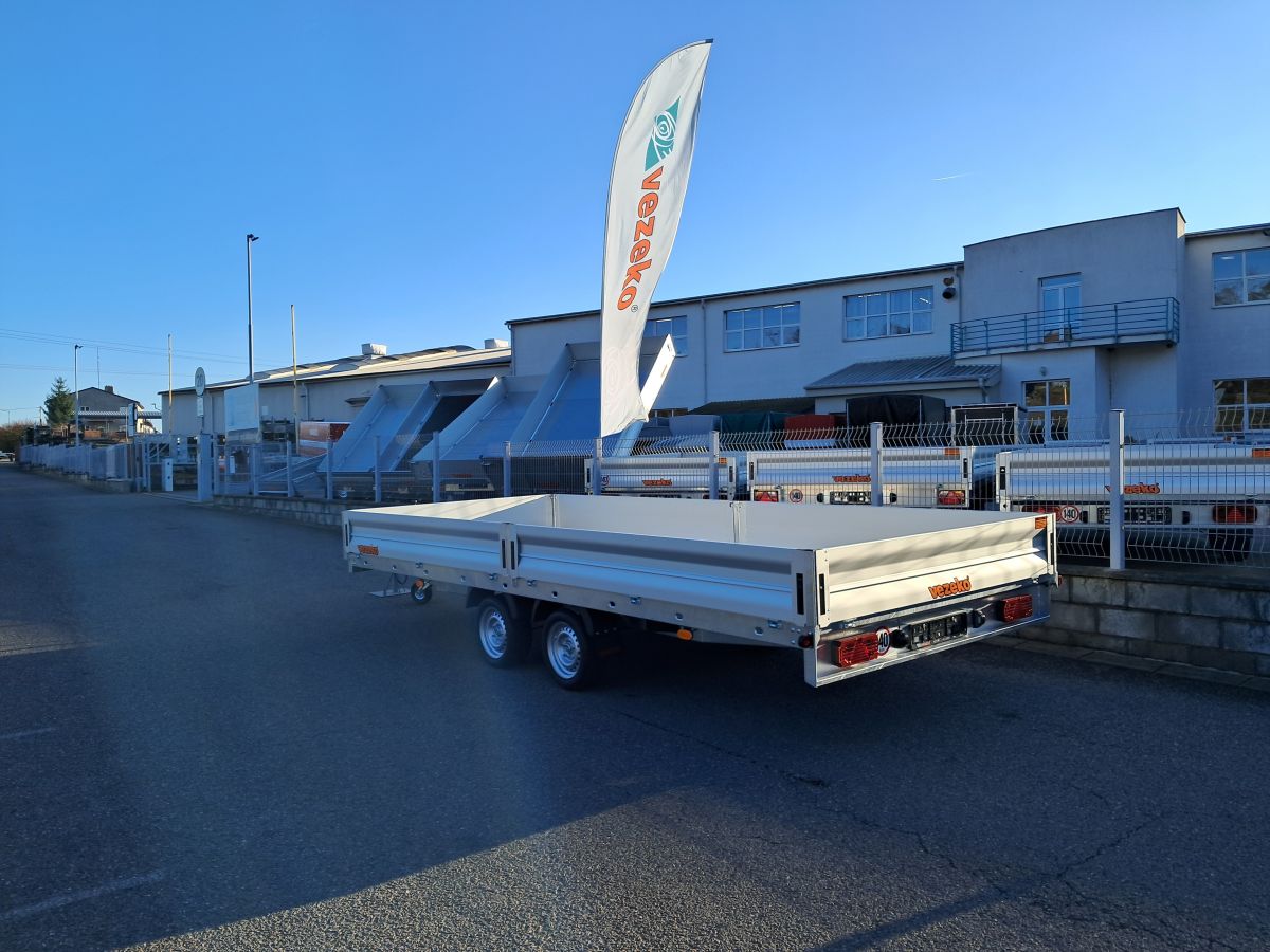 Přívěs je v provedení valník s AL bočnicemi výšky 350 mm a s přípravou pro montáž dalšího příslušenství.