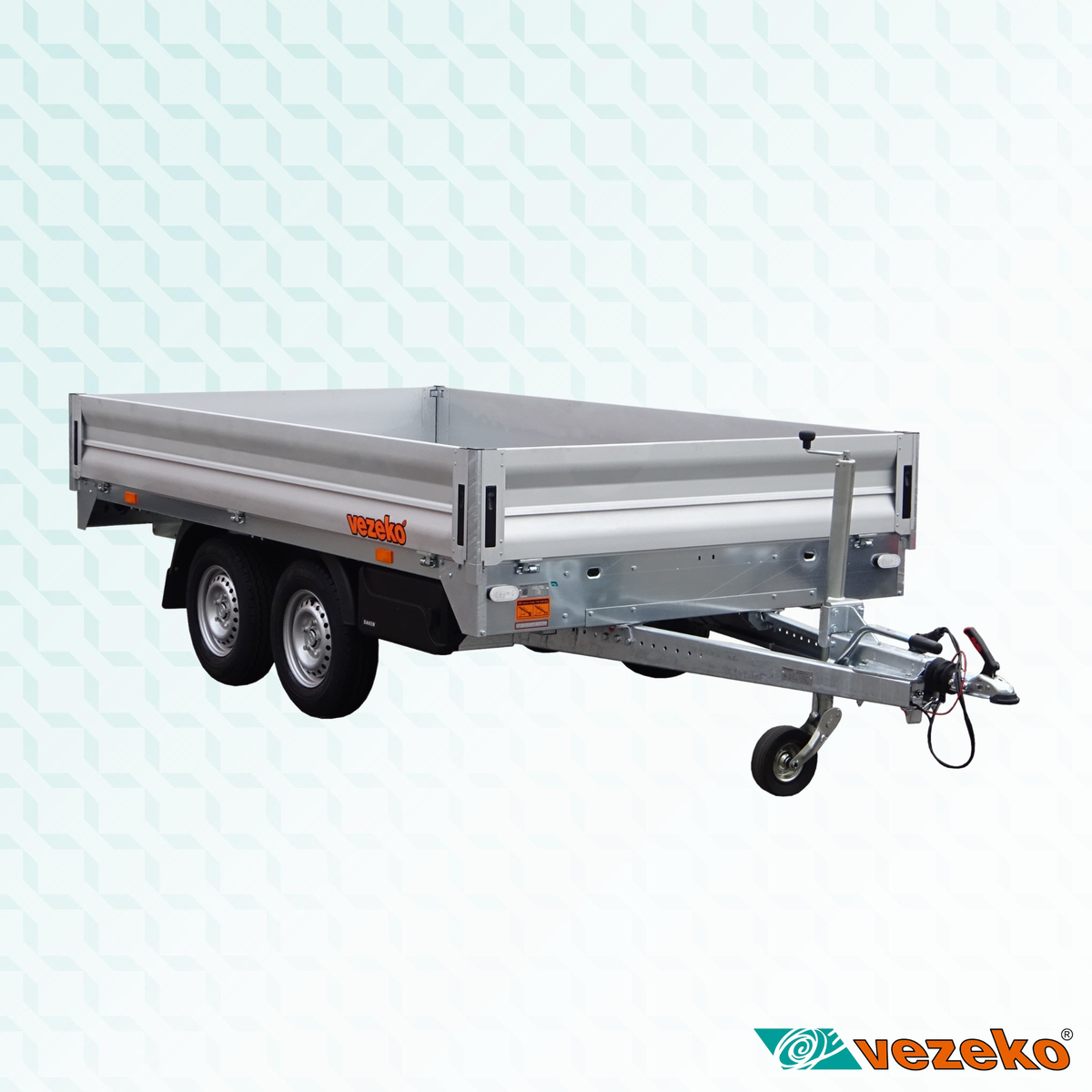 Přívěs je v provedení valník s AL bočnicemi výšky 350 mm a s přípravou pro montáž dalšího příslušenství.