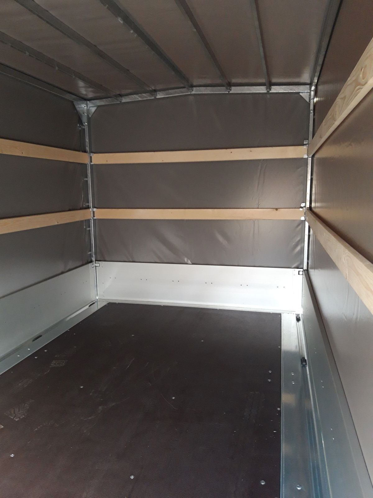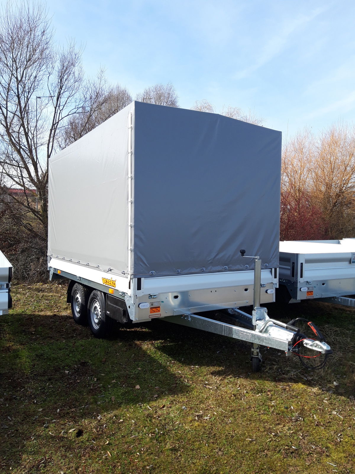 Přívěs je v provedení valník s AL bočnicemi výšky 350 mm a s přípravou pro montáž dalšího příslušenství.