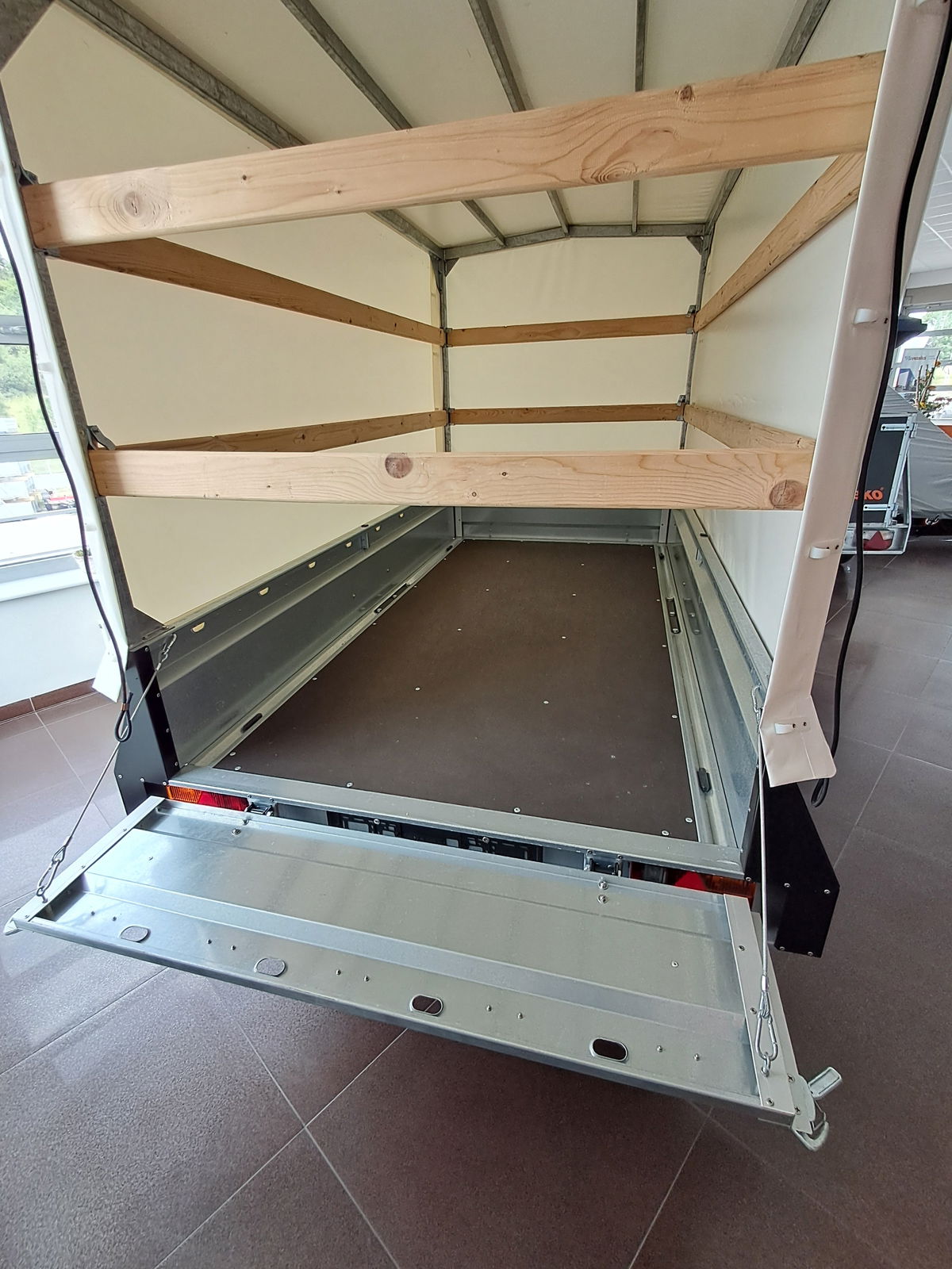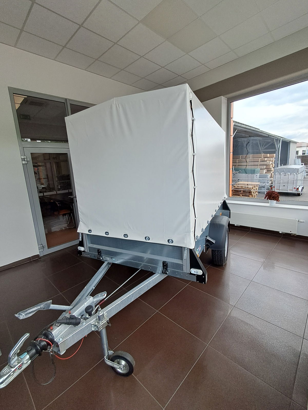 Přívěs je vyrobený v roce 2021 a od té doby stojí vystavený na showroomu.
