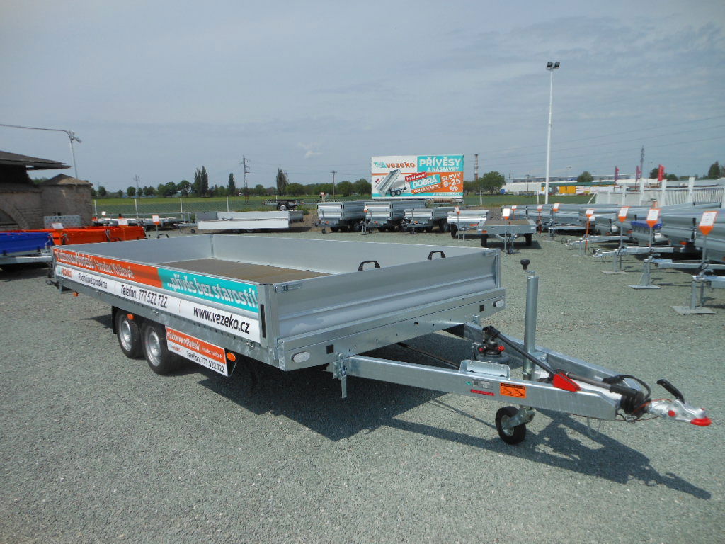 Přívěs bržděný - dvounápravový JUMBO 35.5 + bočnice,nájezdy