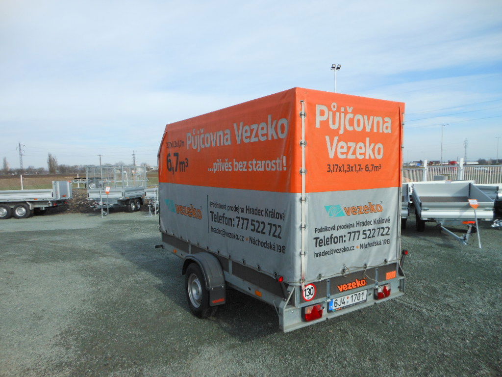Přívěs bržděný - jednonápravový Bronto A16.3 + PLACHTA - výška: 170 cm